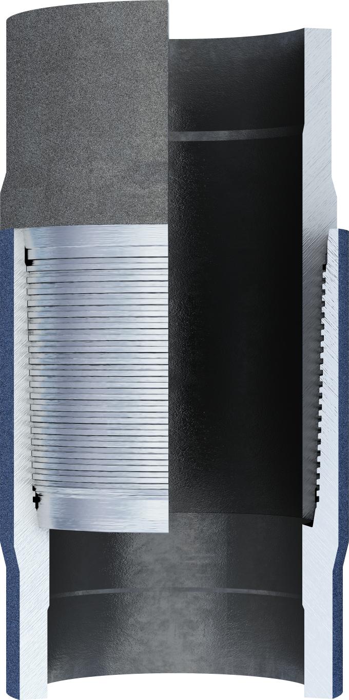 TP-SFJ 是我公司設計的整體半直連型特殊扣產(chǎn)品,雙密封面設計,能保證接頭在內(nèi)壓和外壓載荷下優(yōu)異的氣密封能力,內(nèi)外雙臺肩,可以控制擰接定位,方便油田現(xiàn)場的使用;通過管端加厚的方式使接頭連接效率達到管體屈服強度的 60~70%。