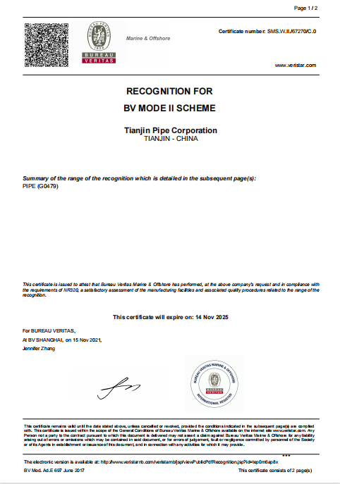 BV法國(guó)船級(jí)社工廠認(rèn)可證書