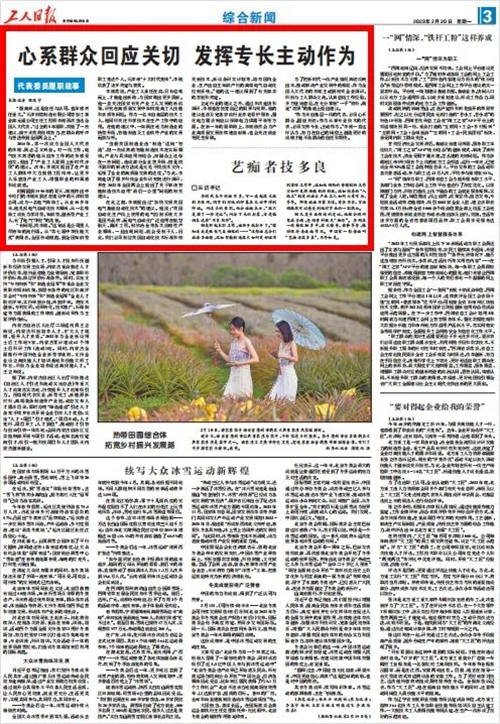 “作為來自基層一線的代表,必須心系群眾、回應(yīng)關(guān)切;作為從事專業(yè)技術(shù)的代表,必須發(fā)揮專長、主動作為。”李剛一直這樣認(rèn)為,努力在自己的崗位上創(chuàng)造更好的成績才能不負(fù)群眾的信任和期待。(記者 陳俊宇)