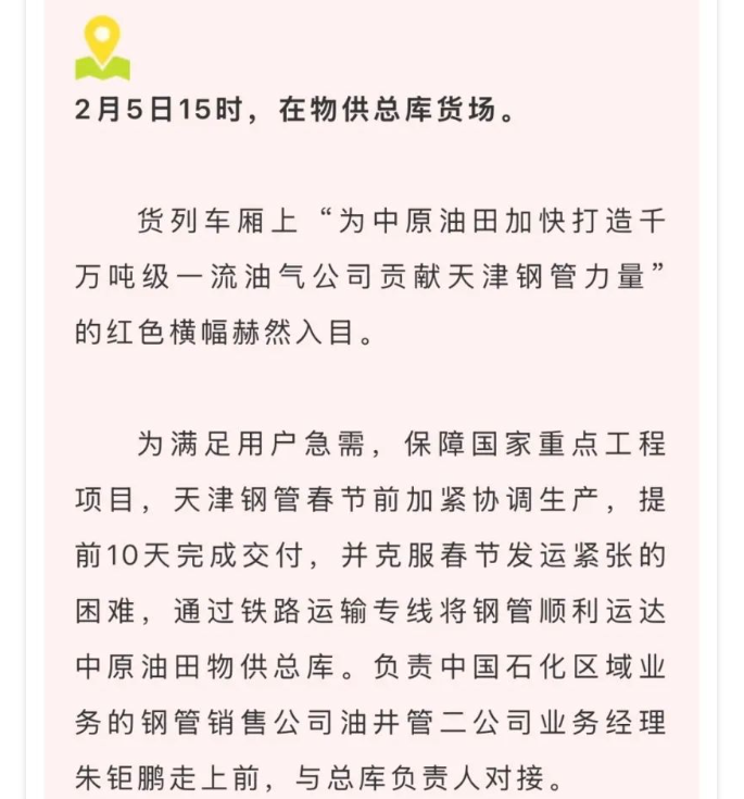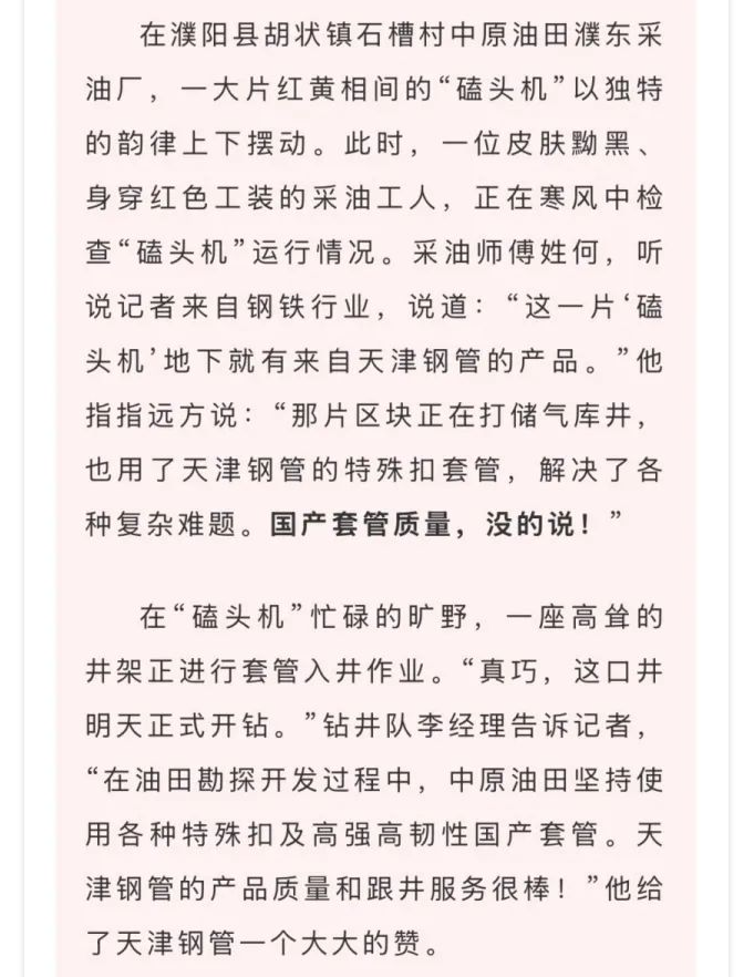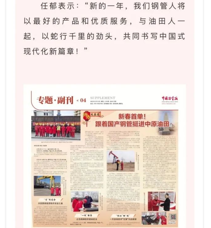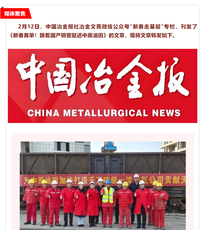 媒體聚焦 | 冶金文苑:新春首單!跟著國產(chǎn)鋼管挺進(jìn)中原油田