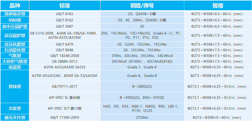 公司主要品種為石油天然氣輸送管、管線管、結構管。產品廣泛應用于能源、化工、機械、基礎建設等領域。
