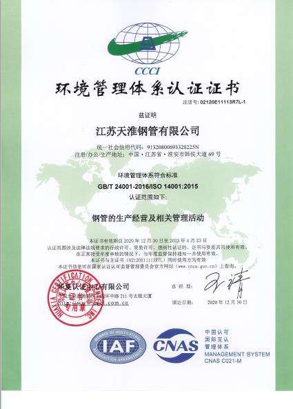 環(huán)境管理體系認(rèn)證證書