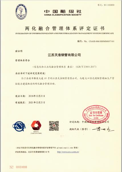 兩化融合管理體系評定證書